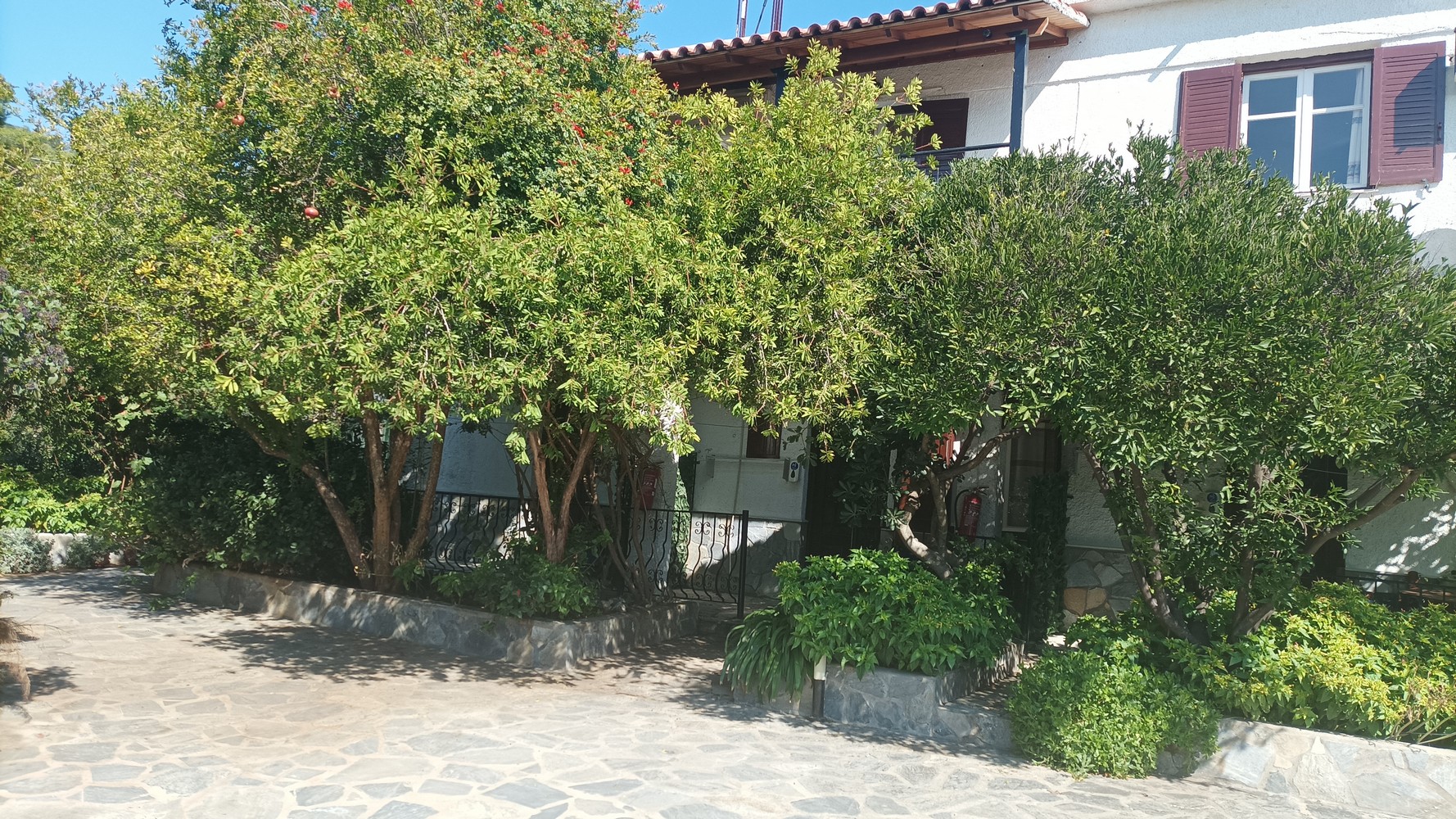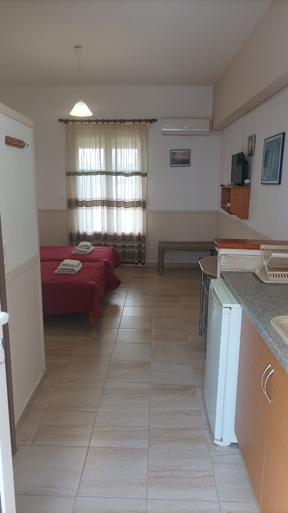 "Stelios Studios" is located 750m (2460ft) from the port of Skiathos and 110m (361ft) from the beach Megali Ammos. It is comprised of 6 studios and one apartment. The studios can accommodate 2-3 people and the apartment 2-6 people. They all have private balconies or terrace, fully furnished kitchen corner, bath, air-conditioning and TV. Close by you will find mini markets, restaurants and anything else you may require. Stelios Studios also offers a marvelous garden and private parking.
